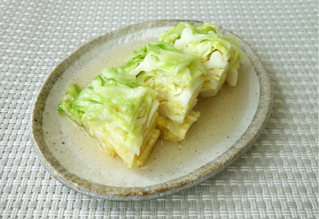 シャキシャキとした食感が美味しい新鮮な国産キャベツを、唐辛子とにんにく醤油で漬けこみました。クセになる旨さです。